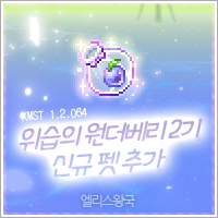 2018년 02월 15일, 22일 캐시아이템 업데이트8년 전메이플 테섭(1.2.064)->본섭 추가, 변경된 데이터들8년 전메생역전 슈가타임 이벤트 - 당첨 아이템 총 정리8년 전메이플스토리 신규 아이템, 의자, 라이딩등 데이터 추가8년 전메이플스토리 위습의 원더베리 2기 파스텔 디어 세트, 신규 펫 추가8년 전메이플스토리 신규캐시 추가 - 메이플블리츠X, 껨디 탈, 황금 멍멍 비니8년 전메이플스토리 신규 헤어/성형 추가 - 오디션, 포유, 라온, 소슬, 메블리, 아이비, 홍차소녀헤어, 봉봉이 얼굴8년 전2018년 02월 01일 캐시아이템 업데이트8년 전메이플 테섭(1.2.063)->본섭 변경점, 추가된 데이터들8년 전메이플스토리 아크(ARK)코인샵 시즌2 품목 총정리8년 전메이플스토리 신규 아이템, 의자, 라이딩, 기타 데이터 추가8년 전메이플스토리 신규 지역 에스페라 몬스터, 스킬 추가/신규보스 군단장 윌8년 전메이플스토리 신규 성형 추가 (자두, 순둥이, 하찮도다, 멜로디 얼굴)8년 전2018년 01월 18일 캐시아이템 업데이트8년 전메이플스토리 신규직업 아크 스킬 변경점 & 5차 스킬 추가 (+이펙트gif) /아크 링크, ARK8년 전메이플스토리 신규 헤어 추가 - 물결, 체스 헤어8년 전메이플스토리 신규 아이템, 의자, 라이딩, 기타 데이터 추가8년 전2017년 12월 28일 캐시 아이템 업데이트8년 전메이플스토리 이벤트 정리 - ARK코인샵, 메가버닝, 디스커버리 多8년 전2627282930