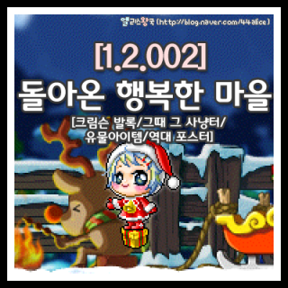 페브러리 로얄 헤어 쿠폰(남, 여)11년 전신규지역 '기계마을', 신규마을 '헤이븐' 추가11년 전신규 캐시아이템 업데이트11년 전MIB 겨울이벤트 시즌2 이벤트 총 모음 & 이벤트별 보상 (해피타임 등)11년 전테스트 클라이언트 Ver. 1.2.003 릴리즈11년 전신규 성형 추가(남, 여)-베이비 페이스, 컬러풀 얼굴, 못마땅 얼굴11년 전제뉴어리 로얄헤어 쿠폰(남, 여)11년 전1월1일 신규캐시아이템 업데이트11년 전12월25일 신규캐시아이템 업데이트11년 전겨울업데이트 1탄! MIB(Maple Ice&Burn) 그들이 온다11년 전와장창!! 이 맛에 깹니다 이벤트11년 전메소마켓-메소마켓 구입 우대권, 메소마켓 상품권, 메소구입 우대권11년 전스타플래닛[싸워라 전설의 귀환, 스타플래닛 시스템 변동사항 등]11년 전2014 윈터헤어쿠폰, 신규헤어추가 (숲속의 실비아 헤어)11년 전돌아온 행복한 마을(크림슨발록, 유물아이템 등)11년 전1+2 부스팅! 멈출수 없는 성장! 이벤트(메이플 버닝, 버닝 캐릭터, 버닝시스템)11년 전레지스탕스 링크스킬(스피릿 오브 프리덤) 추가11년 전냉동용사, 열혈용사 이벤트 & 절친 이벤트11년 전캐릭터 위치 변경기능 추가11년 전겨울 출석체크 이벤트 & 보상11년 전3637383940
