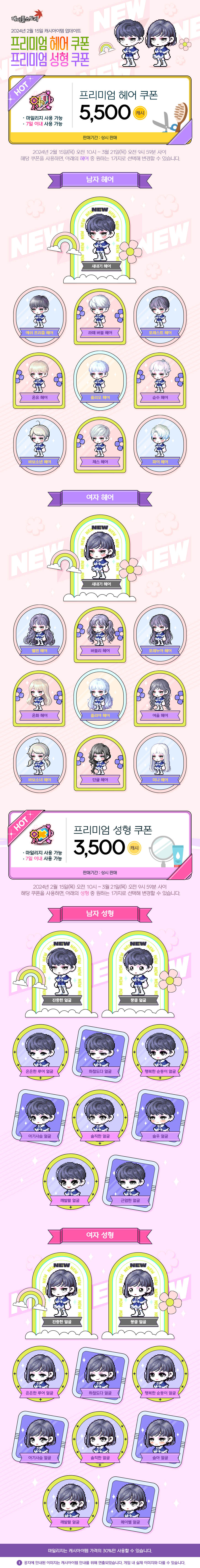 2024년 2월 15일 캐시아이템 업데이트 프리미엄 헤어 쿠폰 / 프리미엄 성형 쿠폰