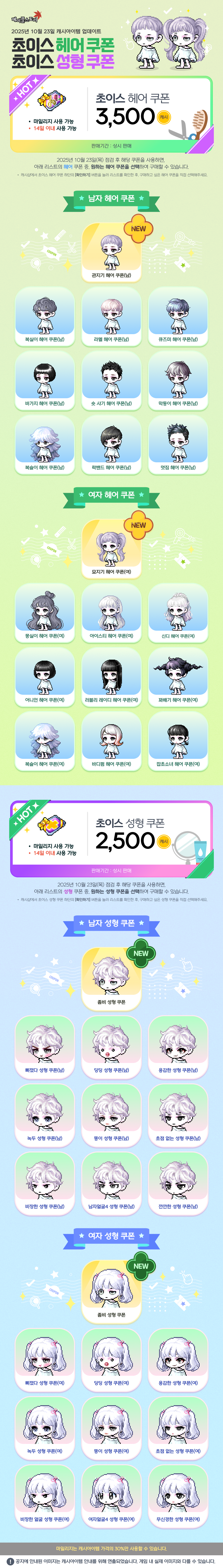 10월 23일 캐시아이템 업데이트 - 초이스 헤어&성형 쿠폰