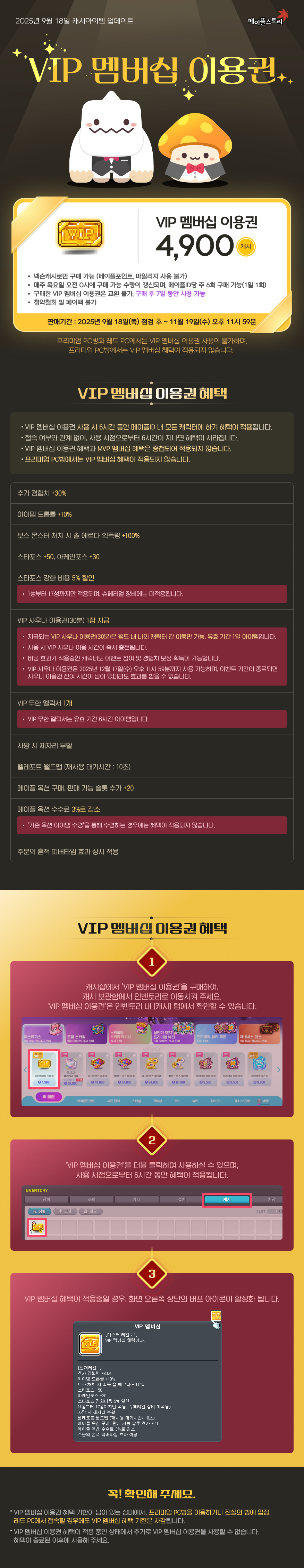 (수정) 9월 18일 캐시아이템 업데이트 - VIP 멤버십 이용권