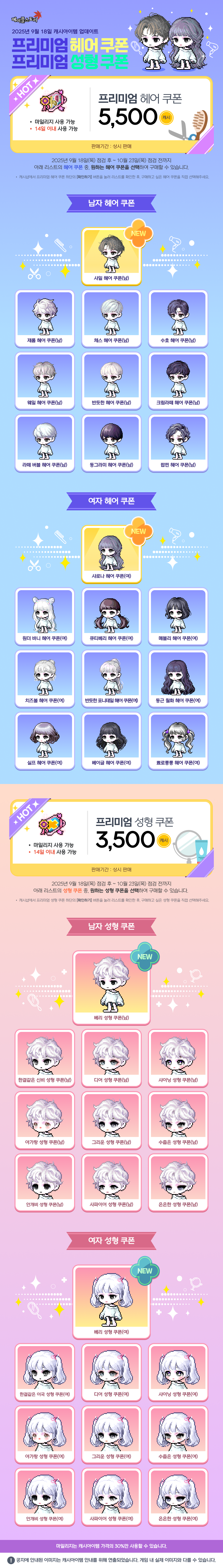 9월 18일 캐시아이템 업데이트 - 프리미엄 헤어&성형 쿠폰