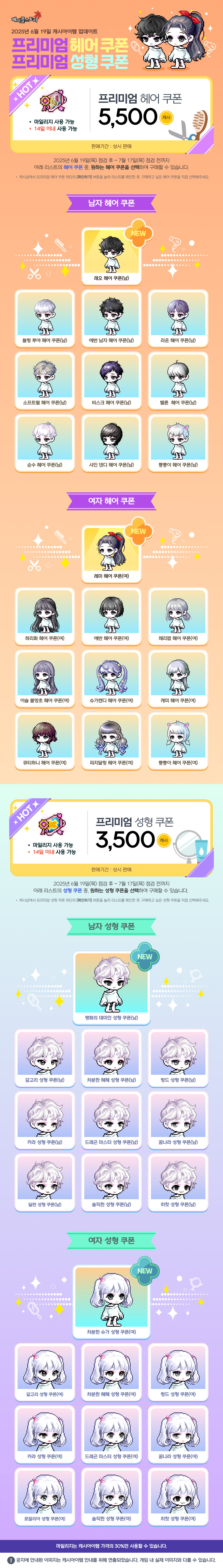 6월 19일 캐시아이템 업데이트 프리미엄 헤어&성형 쿠폰